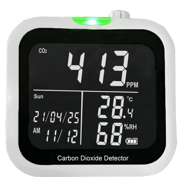<p>Instrument qui permet de mesurer la qualité de l'air en mesurant le niveau de dioxyde de Carbone (CO2), la température et l'hygrométrie dans une salle : une alarme sonore et visuelle alerte quand le seuil est dépassé.</p>